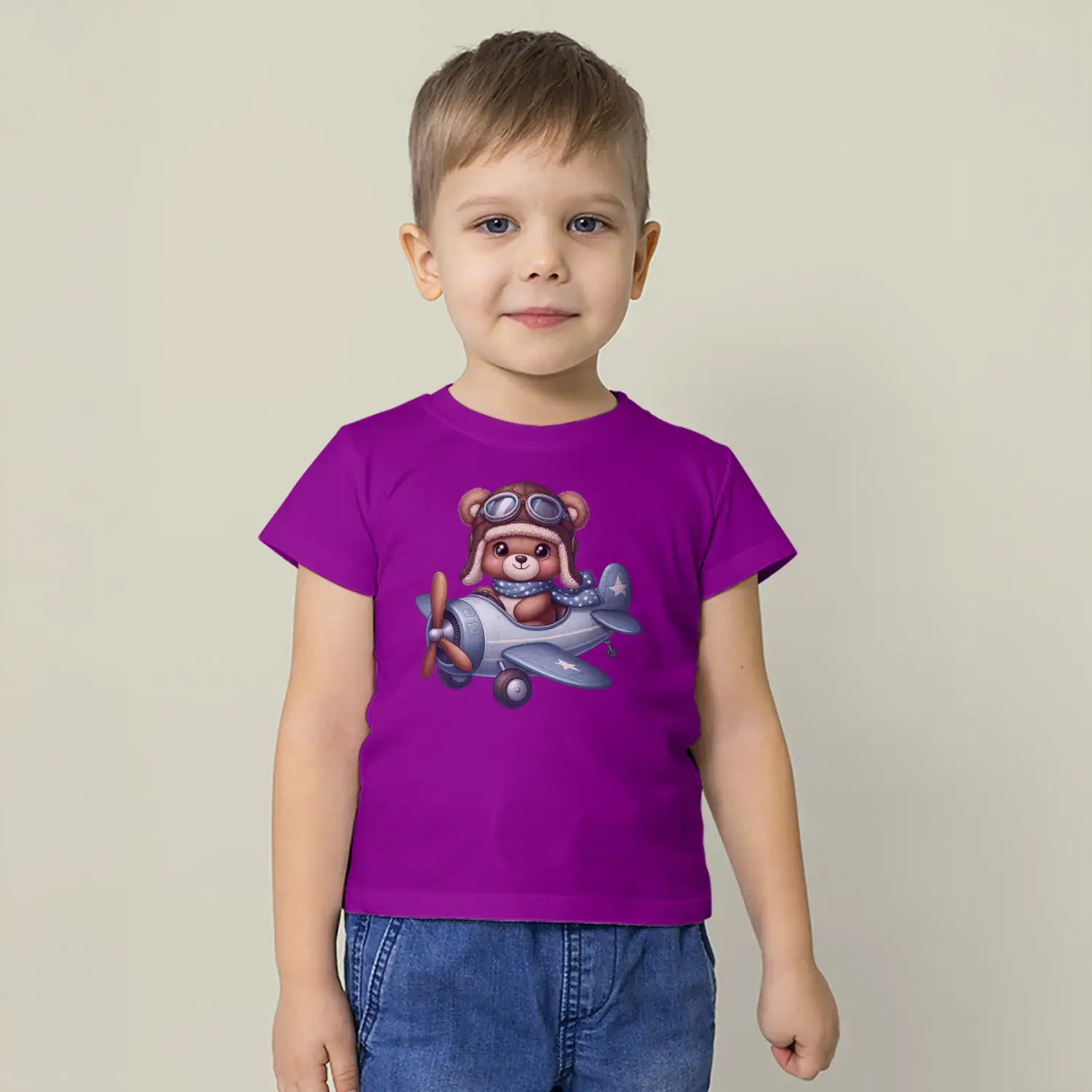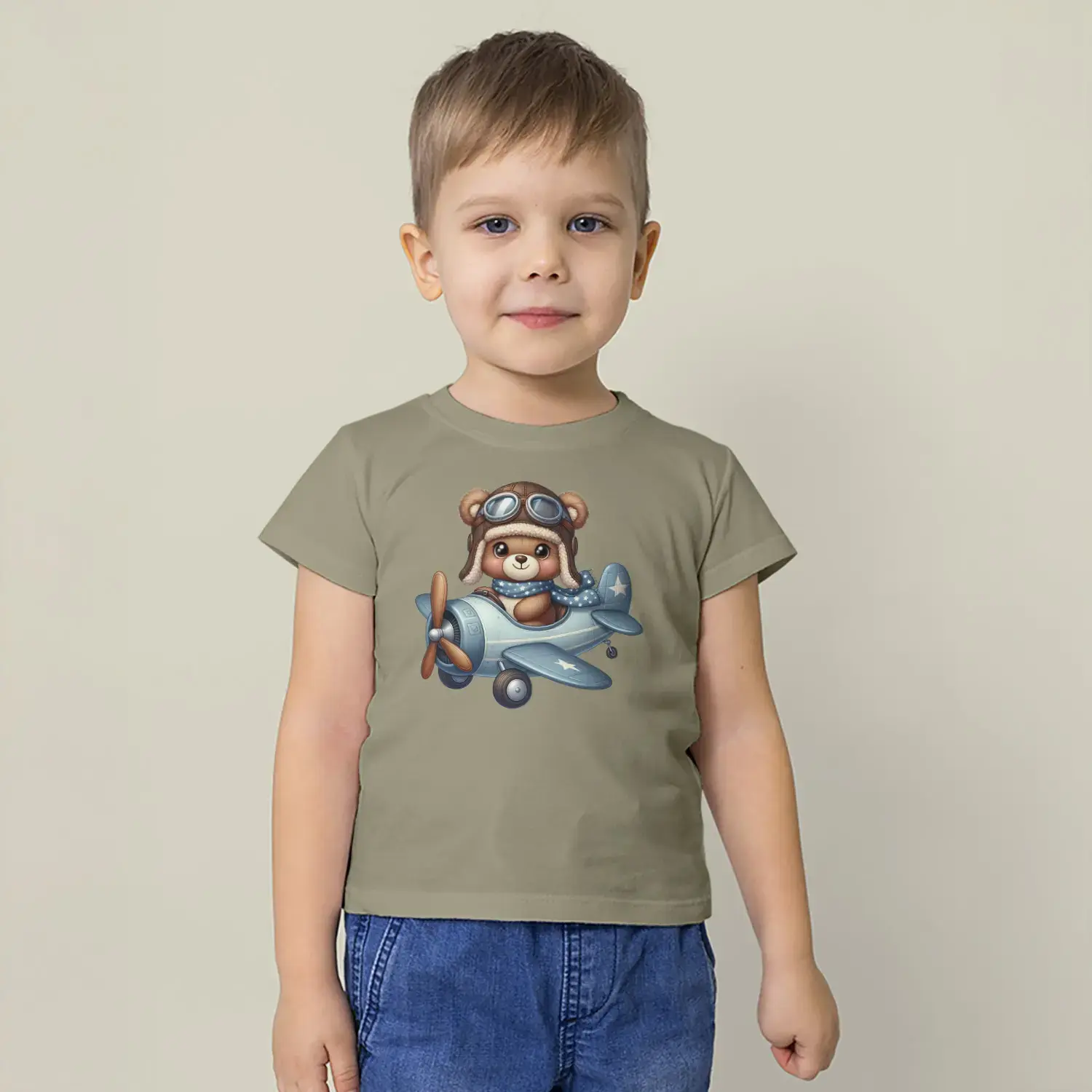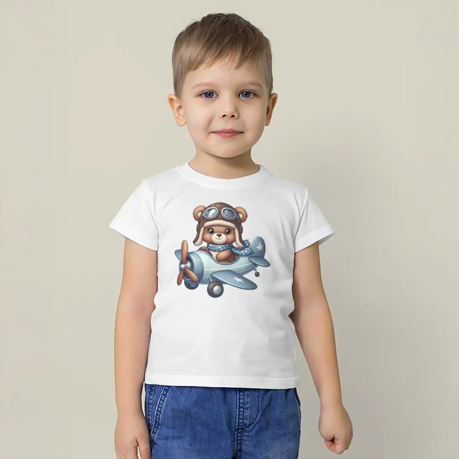 Pilot Ayıcık Uçakta Baskılı Erkek Çocuk Tişört