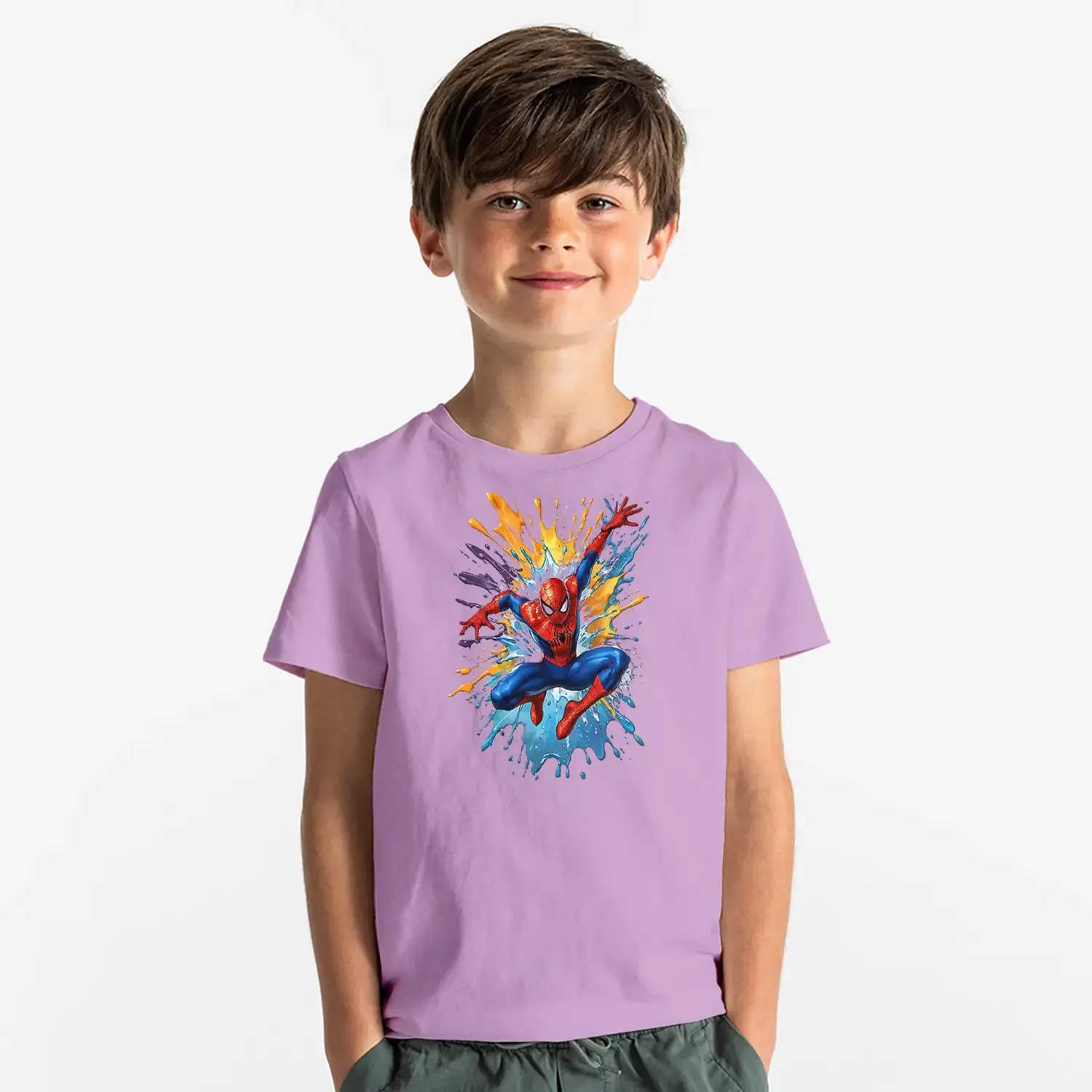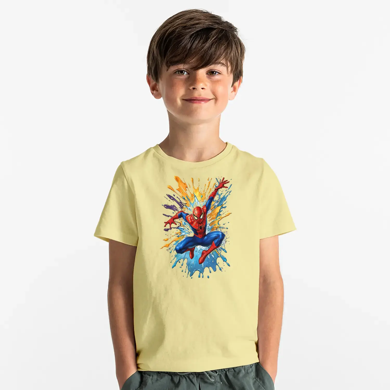 Renk Patlamalı Zıplayan Ağ Atan Süper Kahraman Baskılı Erkek Çocuk Tişört