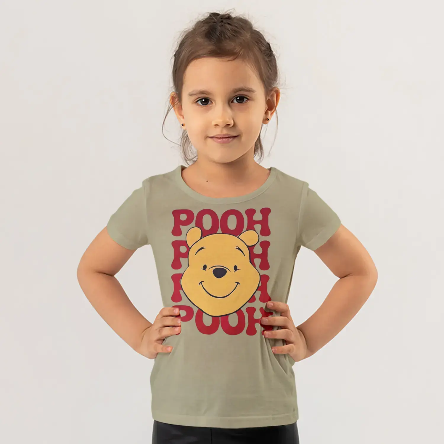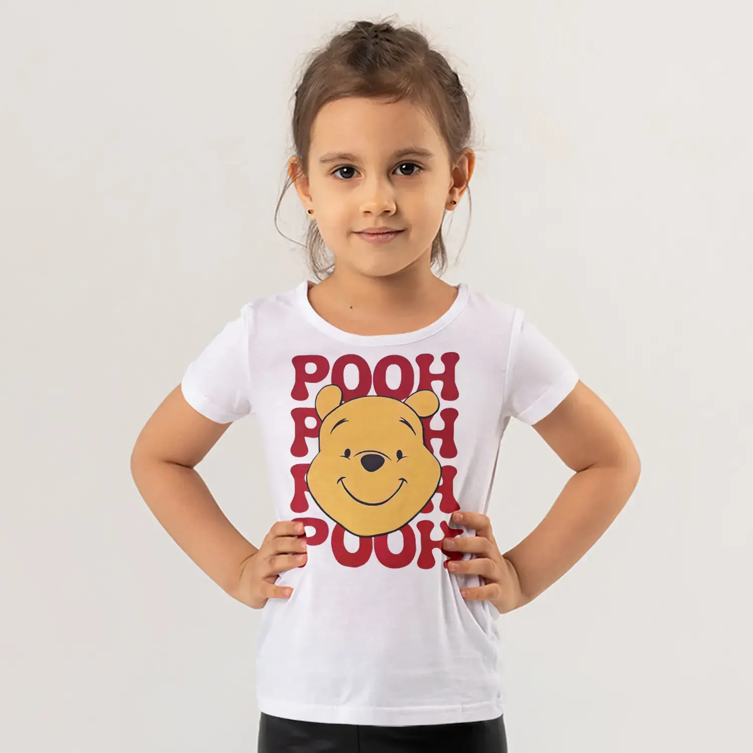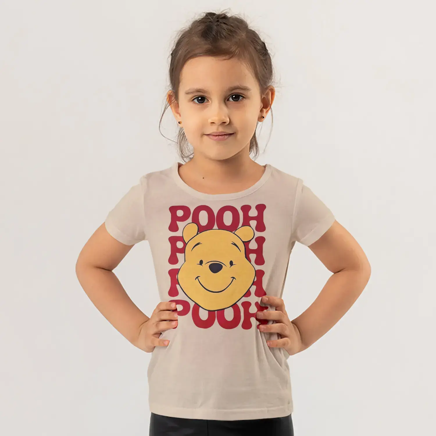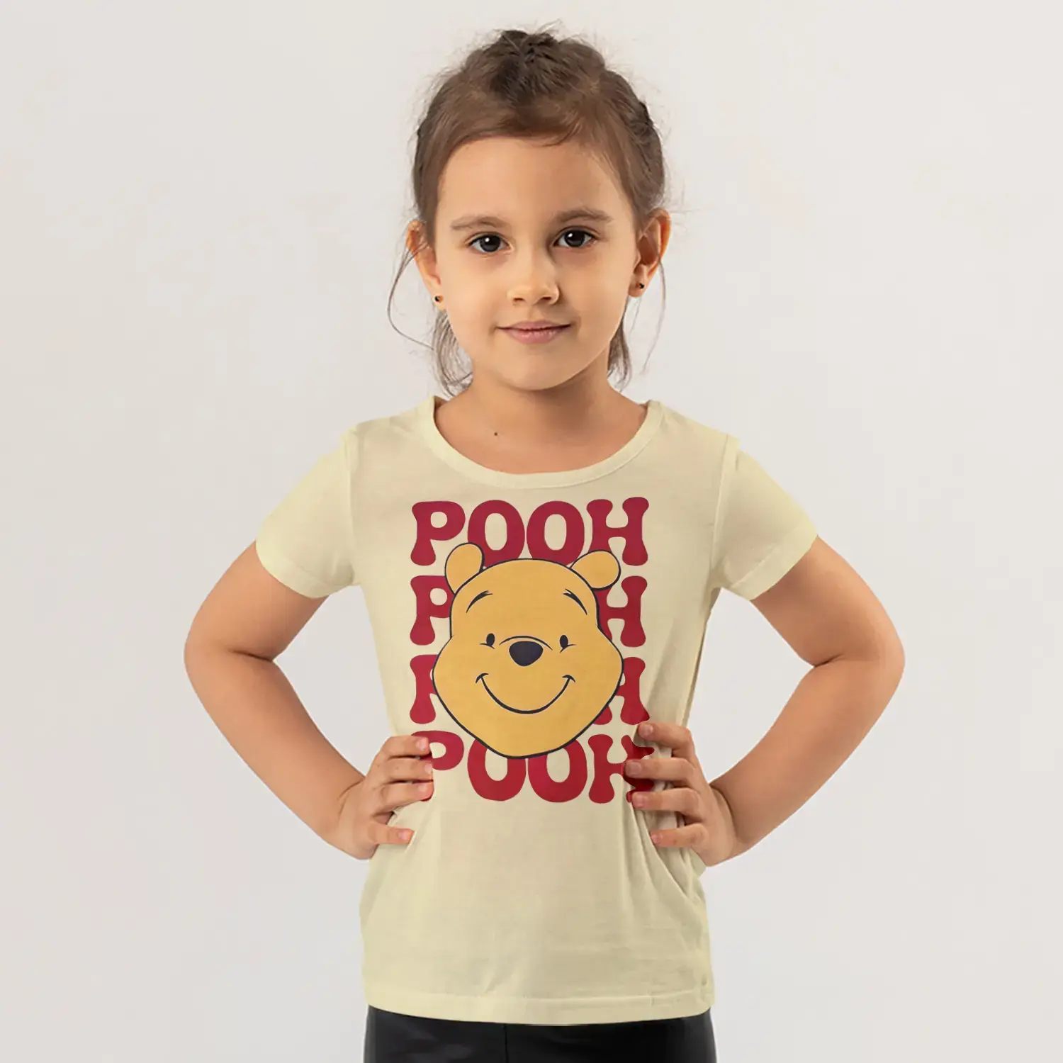 Sarı Yüzlü Sevimli Bal Ayısı Tekrarlı Yazı Baskılı Kız Çocuk Tişörtü