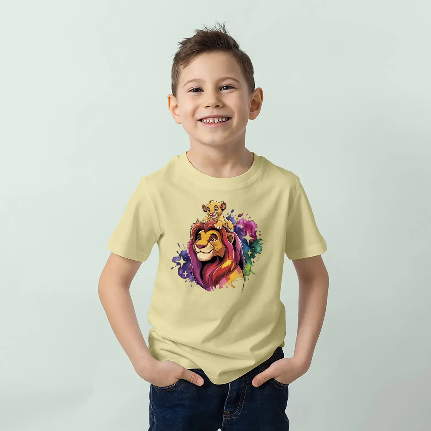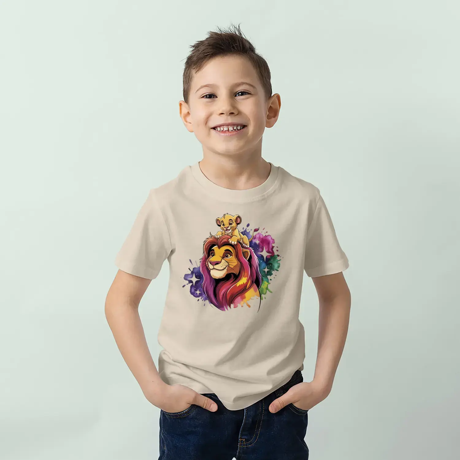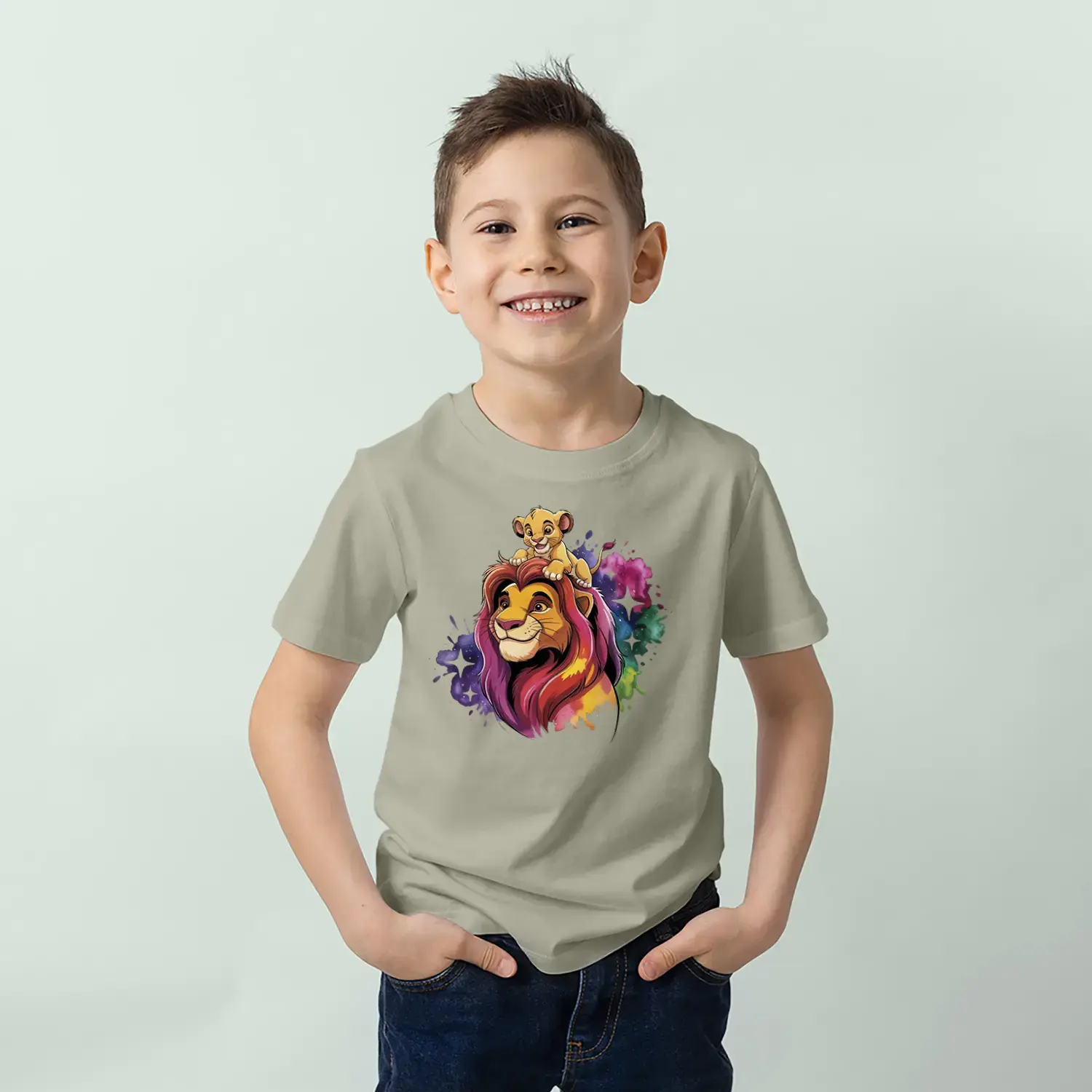 Sevimli Aslan ve Yavru Baskılı Erkek Çocuk Tişört