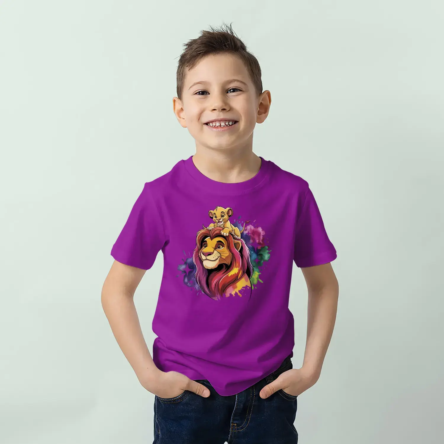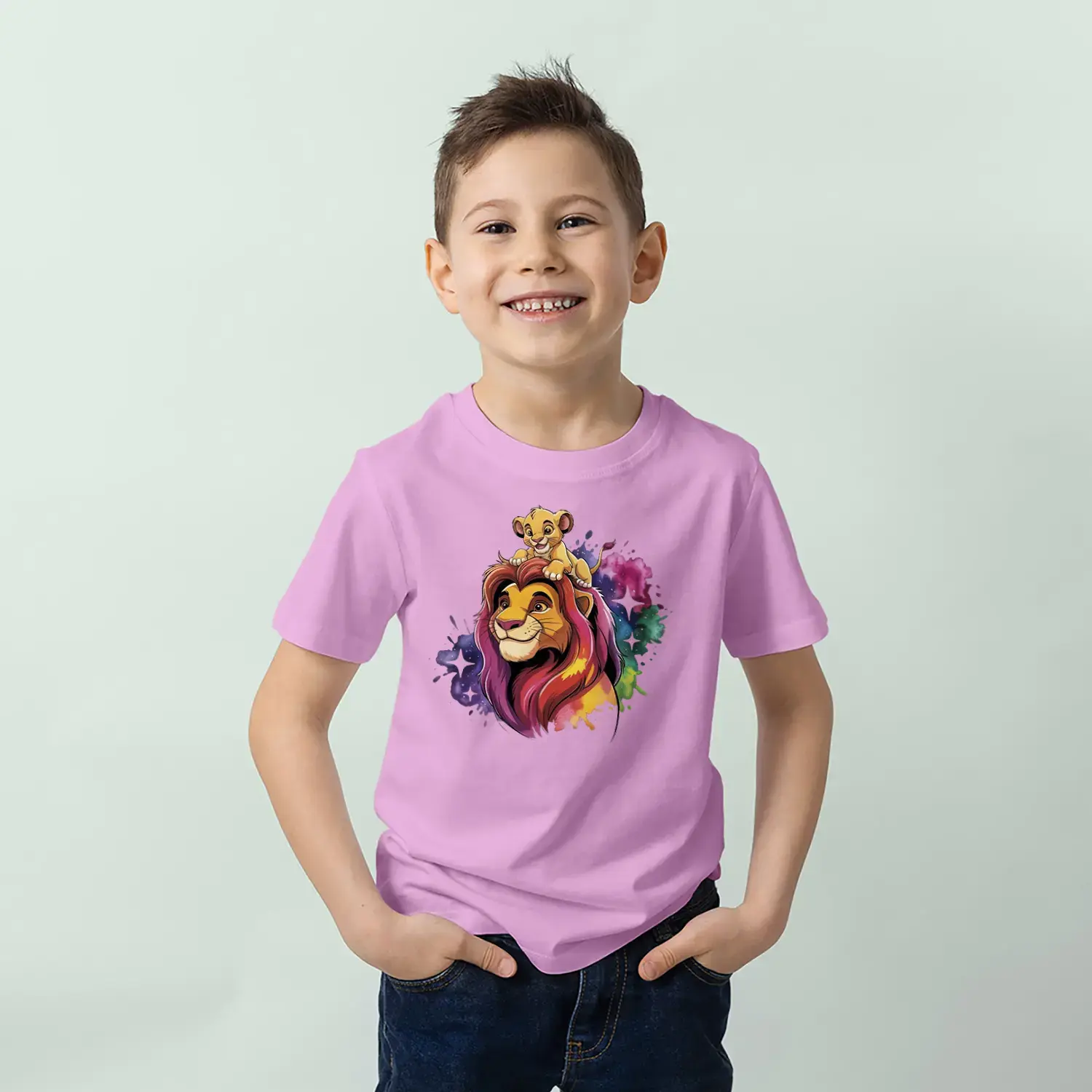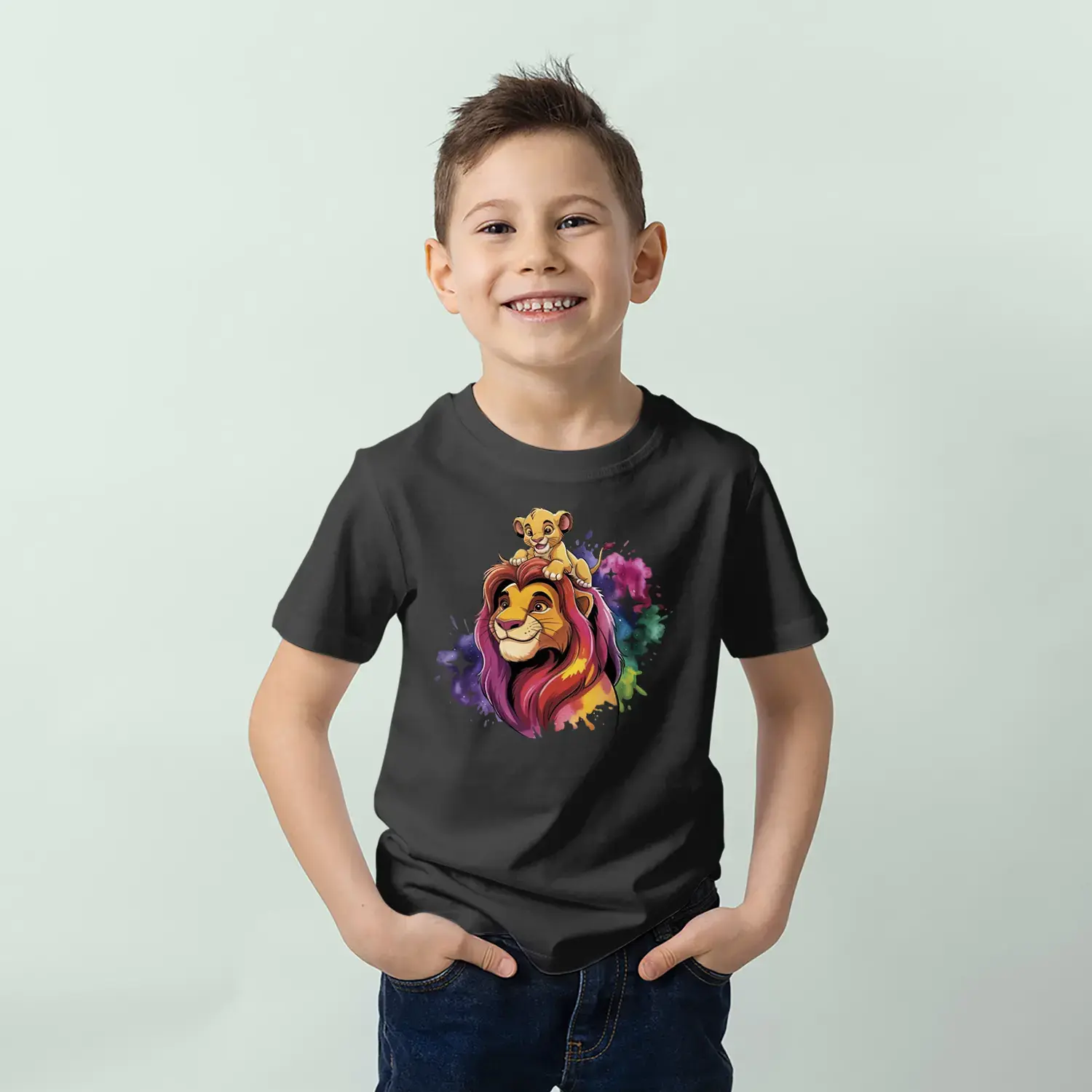 Sevimli Aslan ve Yavru Baskılı Erkek Çocuk Tişört