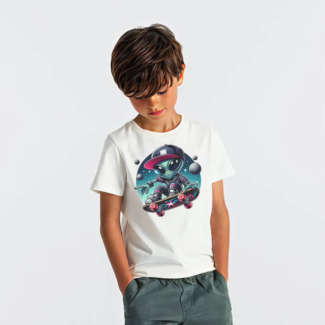 Uzaylı Kaykayci Erkek Çocuk Tişört